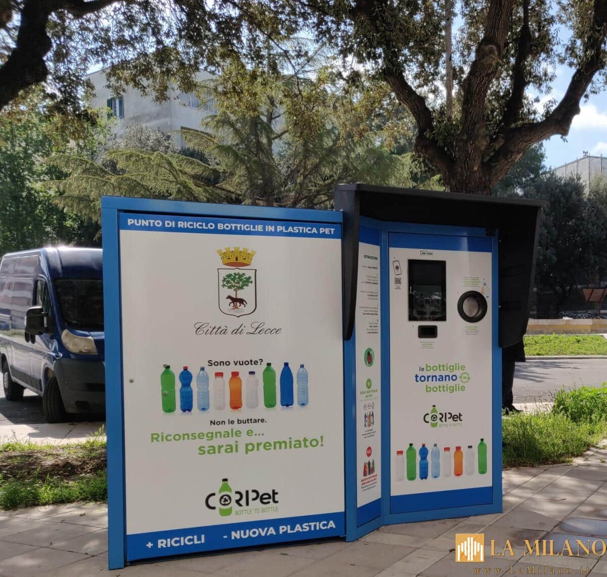 Da martedì 25 luglio saranno attivi anche gli ultimi due ecocompattatori Coripet previsti in piazzale Cuneo, angolo con via Lucca, e in Piazza Bertacchi, a Frigole, che completano la dotazione di 5 ecocompattatori prevista a Lecce.
